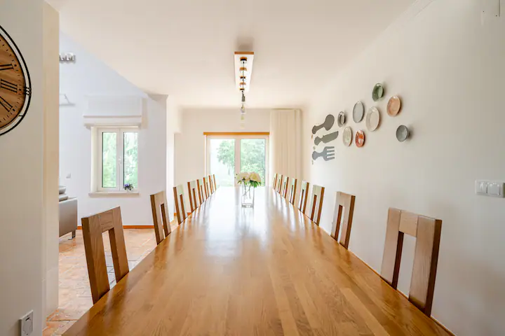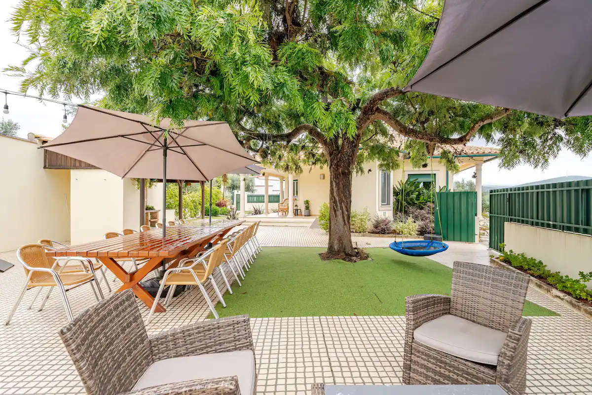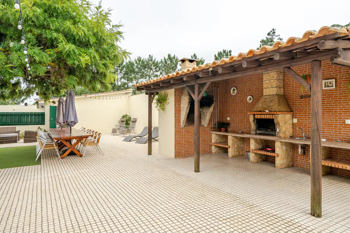 Na Casa EmCanto, os encontros têm lugar marcado. A cozinha e a sala de estar são o coração da casa, ideais para partilhar refeições e conversas longas . No exterior, o espaço de convívio estende-se ao jardim, com churrasqueira e zonas pensadas para reunir amigos e família ao ar livre.